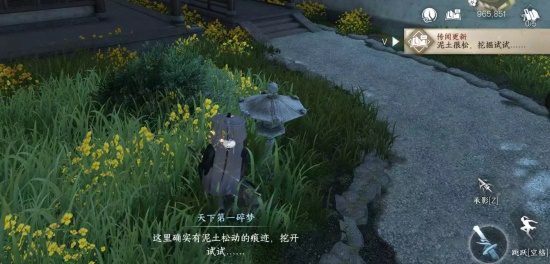 二、 到汴京965.851处使用动作“挖掘”,获得“剑门秘籍”
